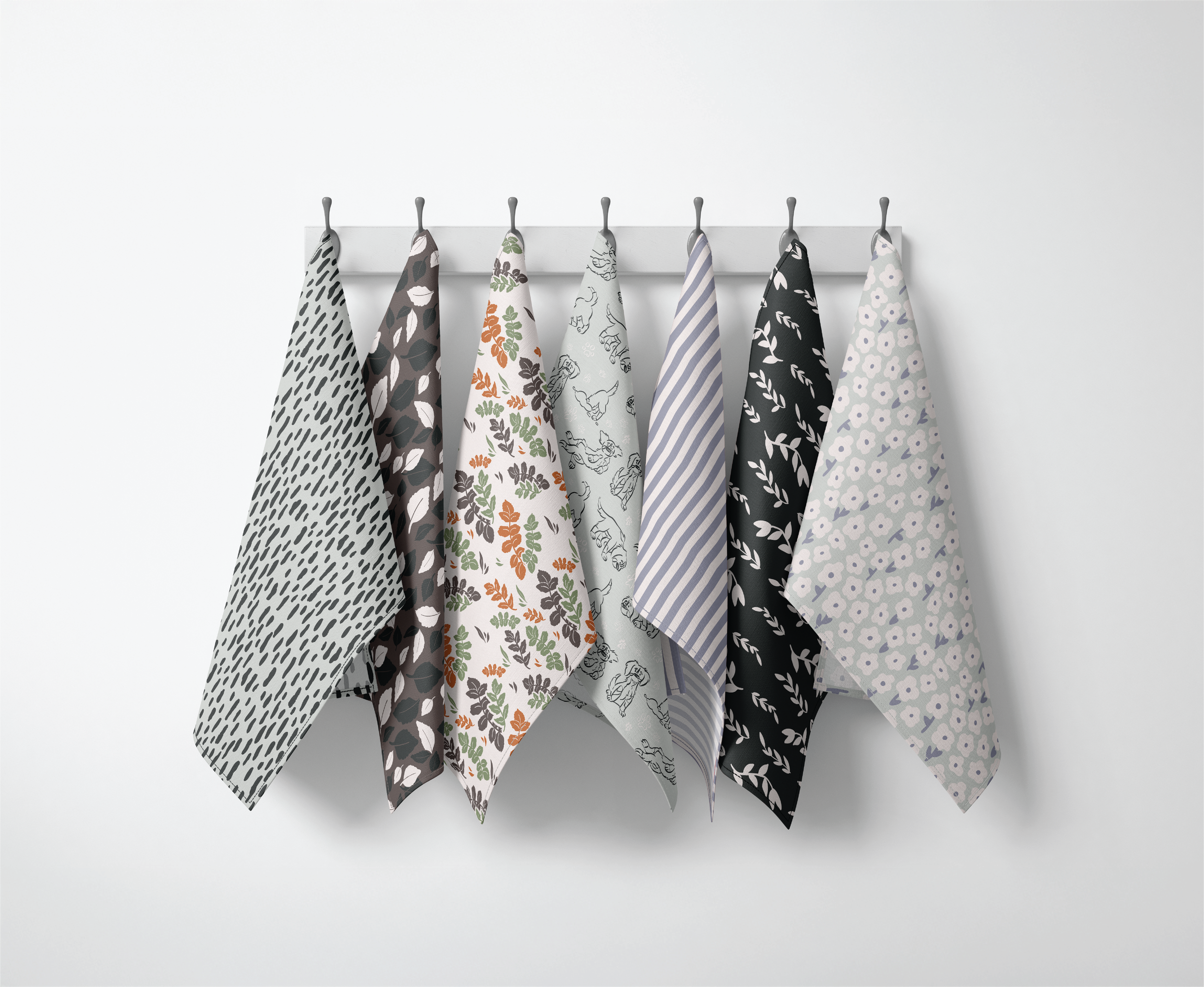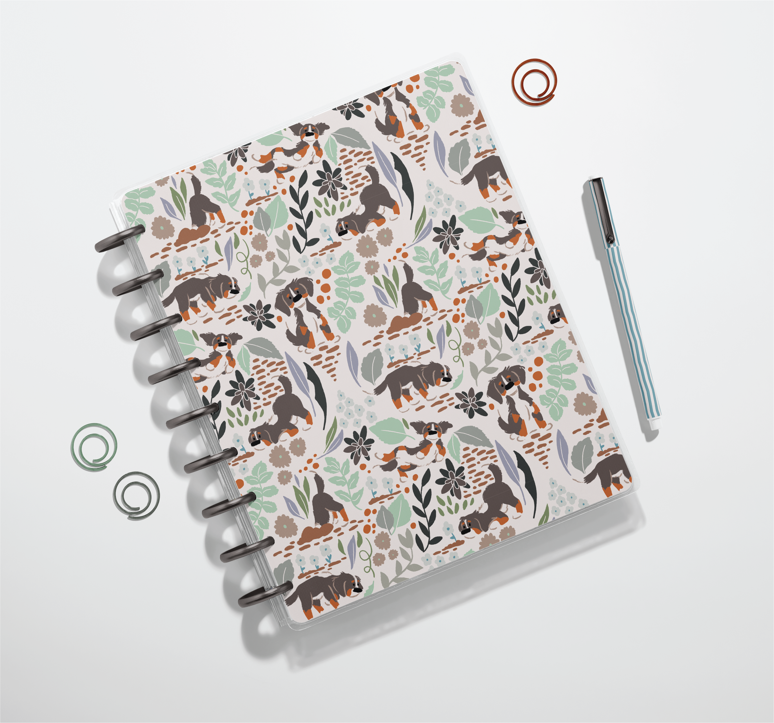 Growing up with dogs, it felt strange not having a pet after getting married. We made it about eight months before bringing home our first puppy, Bernie—a bundle of fluff with a big personality. The backyard became his favorite spot and he would spend hours out there causing mischief and munching on leaves and sticks. Each time he came inside, he’d proudly present us with his favorite leaves as gifts. This pattern design is a collection of all Bernie’s favorite plants in his backyard.
